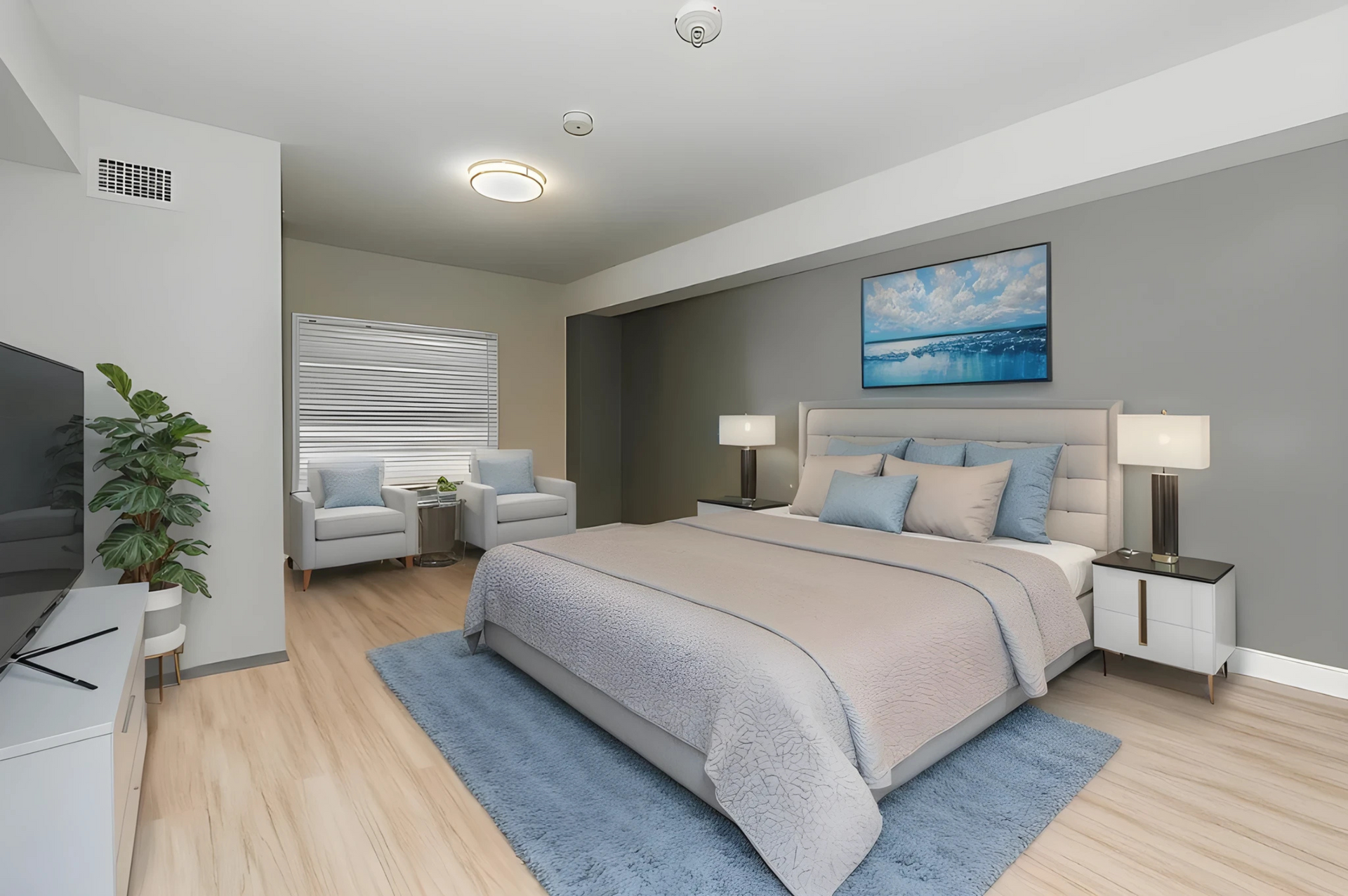 This open-concept condo is a smart choice for anyone looking for comfort, convenience, and long-term value. Inside, the contemporary layout features sleek laminate flooring, high ceilings, and large windows that fill the space with natural light. The kitchen is finished with stylish two-toned cabinetry, quartz countertops, a modern backsplash, and stainless steel appliances, while the thoughtfully designed living/sleeping area and contemporary bathroom complete the suite.